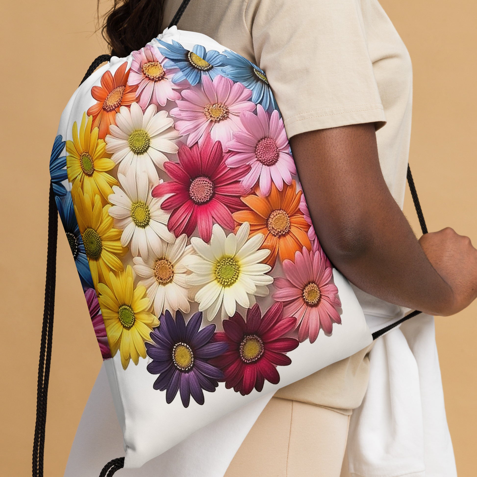 Embrace the vibrant colors and natural beauty of our Gerbera Daisy Drawstring Backpack – a true work of art that will make heads turn wherever you go! 🎨✨